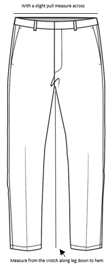 To find your inseam, measure from the crotch, along leg down to the hem.